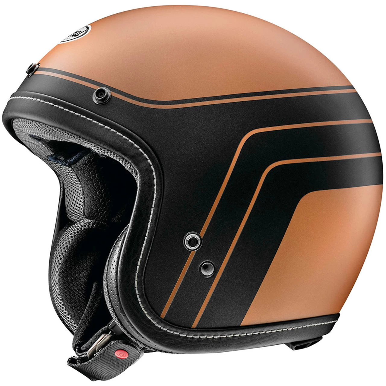 The new Groovy Tan Frost setup of the Arai Classic V Helmet offers a sweet looking setup along with some next-level features in an open face helmet. The Classic-V brings modern technologies like Arai’s proprietary PBcLc shell, removable anti-microbial liner and a hidden ventilation system to an old school look.