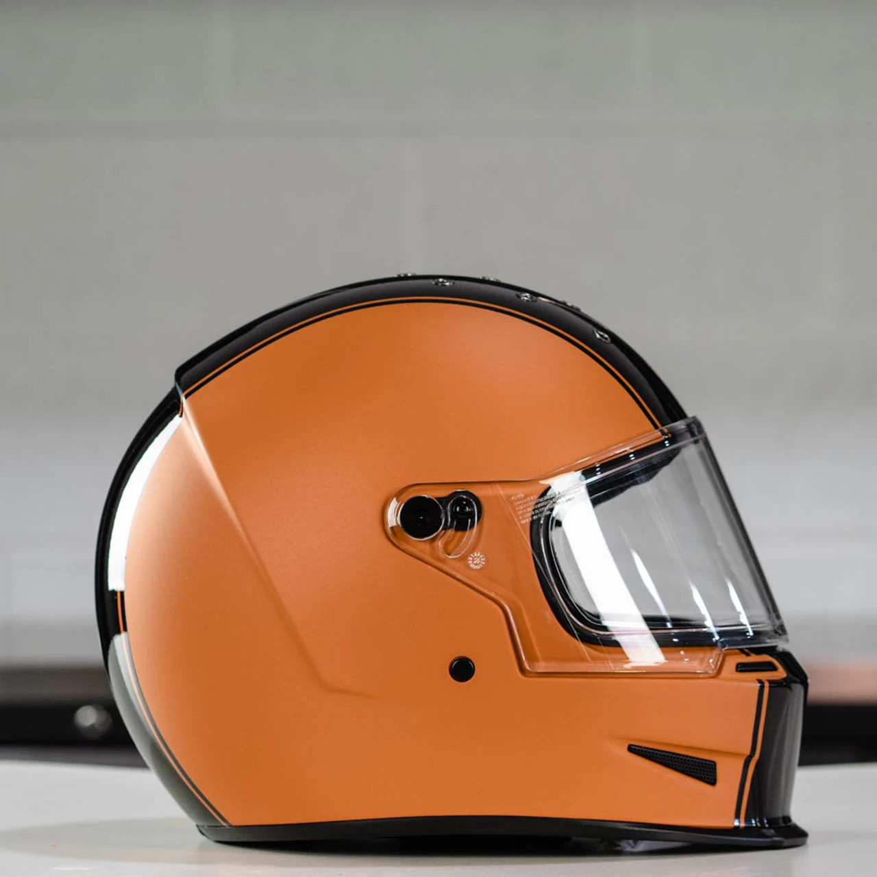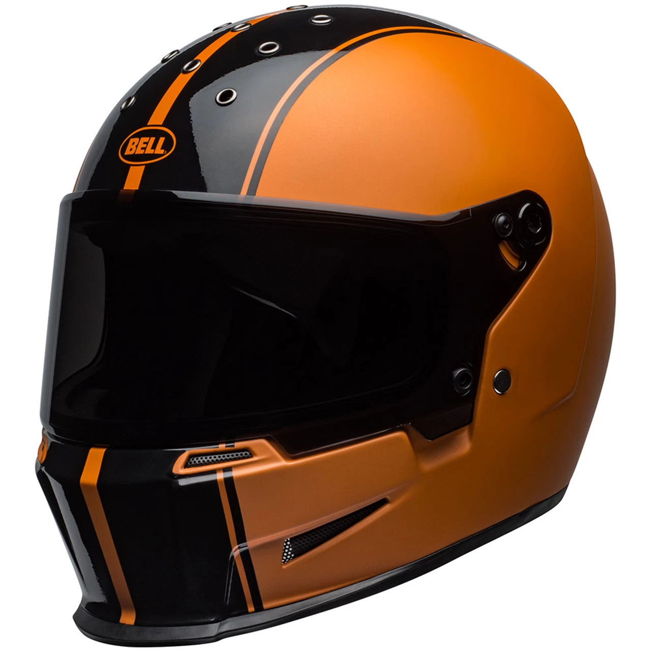 The new Eliminator delivers bold, assertive street performance. Sixty years of evolution is rolled into a stripped down, no-BS helmet that combines light weight, perfect fit and a legendary reputation for protection. The Bell Rally Matte/Gloss Black/Orange design gives riders a sweet colorway to match the aggressive lines of this new full face helmet. The auto-inspired design is available in either fiberglass composite or carbon fiber shells, and can be worn with no-fog face shields or visors. Scorch the dragstrip. Carve the canyons. Own the streets.