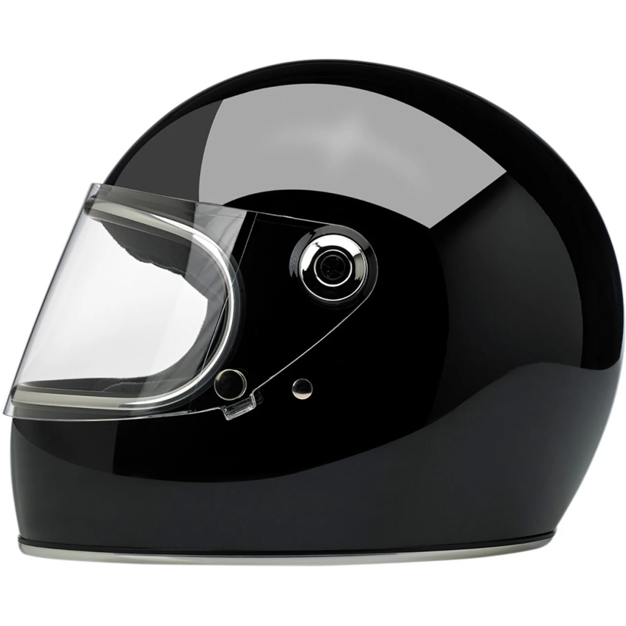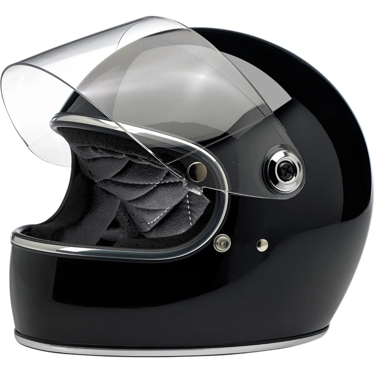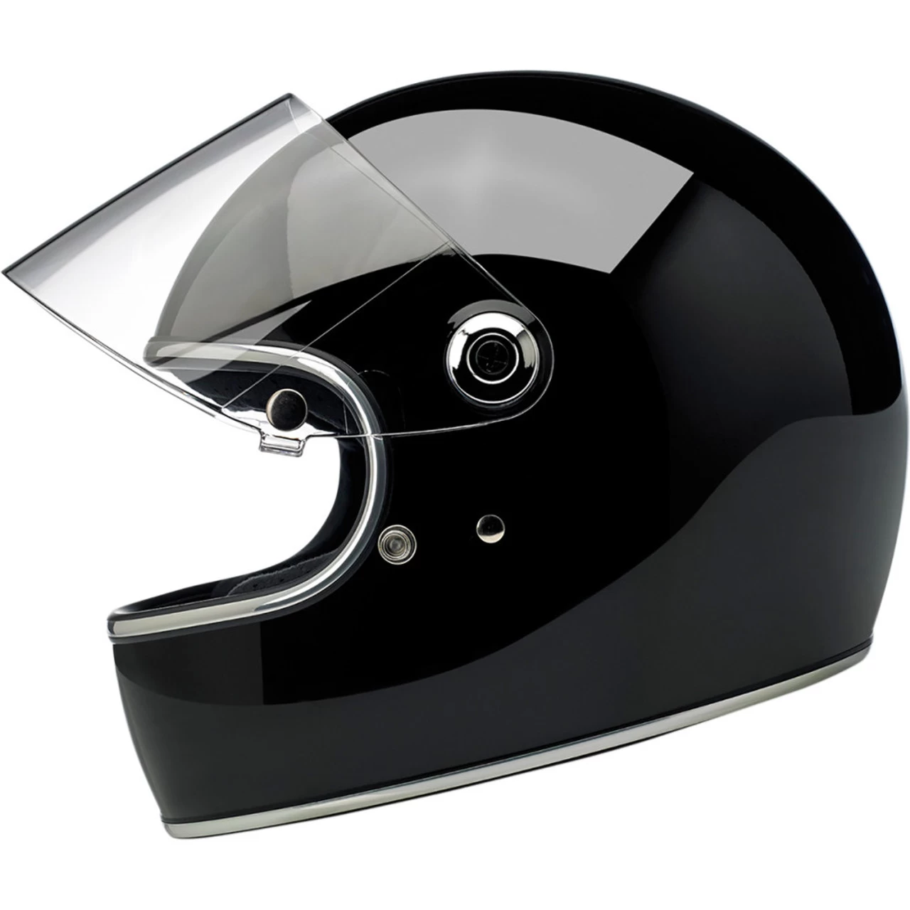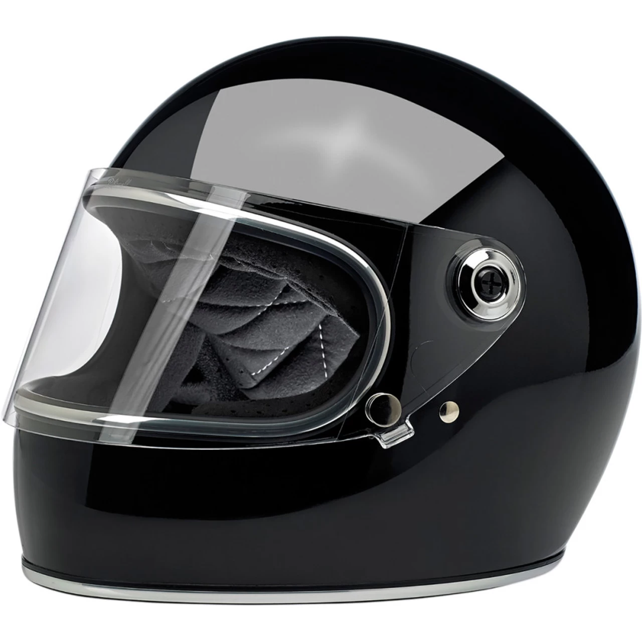 Pickup the Biltwell Gringo S Helmet, with a fresh ECE rating, in a timeless Gloss Black finish. The Biltwell Gringo S is built around Biltwell’s injection-molded ABS outer shell and features a shock-absorbing EPS liner with hand-stitched interior padding, cheek pads and BioFoam chin bar cushion for comfort. The anti-fog Gringo S shield boasts awesome optics and simple hinge mechanics for high style and easy removal for replacement or cleaning. A snap and tab configuration on the rider’s left side offers speedy opening and secure closing to protect its wearer from road debris and wind irritation with little fanfare or complication.