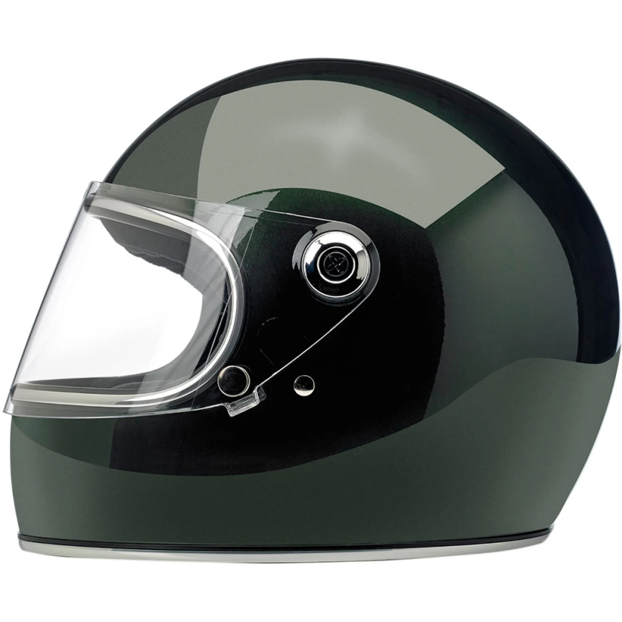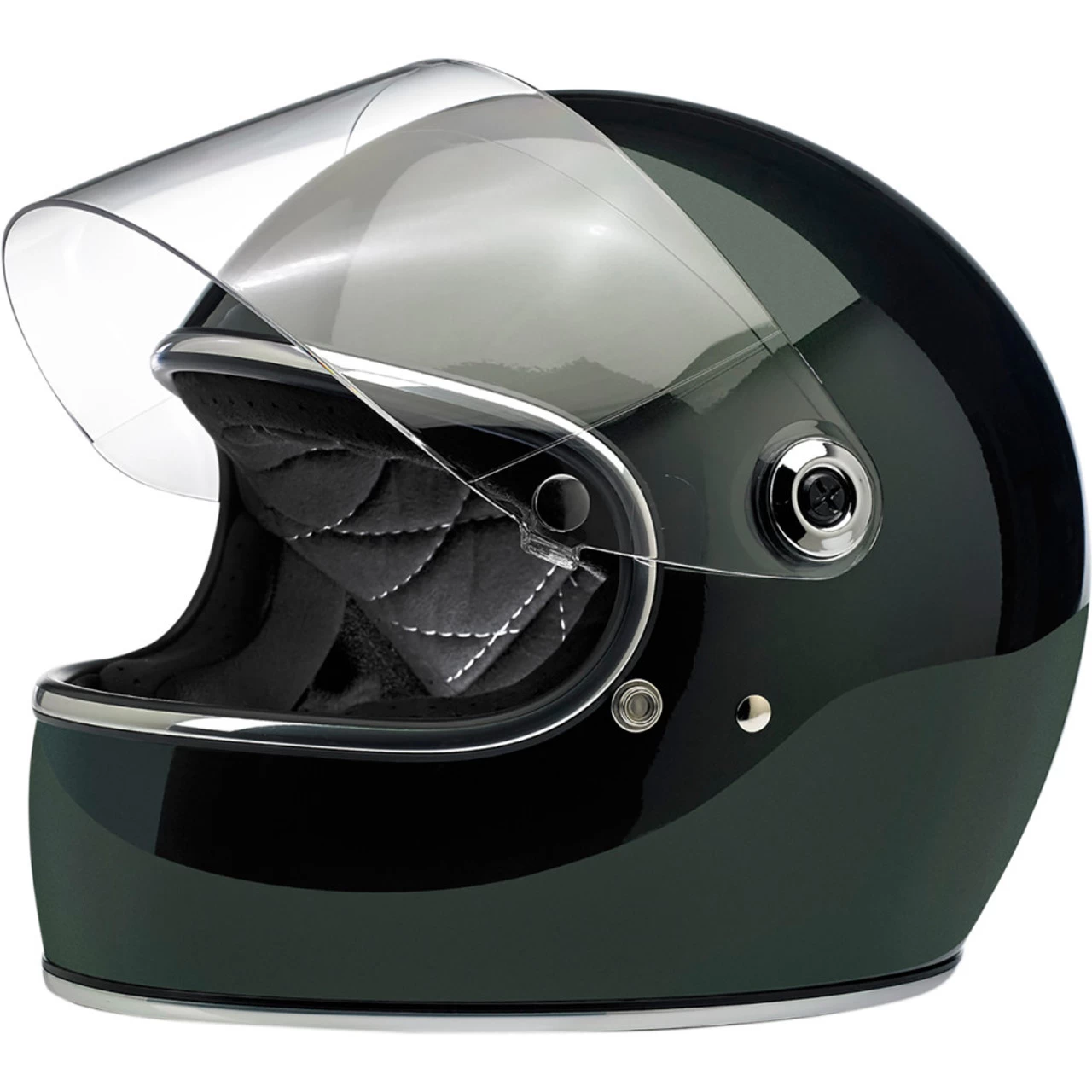 The Biltwell Gringo S Gloss Sierra Green Helmet gives riders a good looking finish on a timeless helmet. The Biltwell Gringo S is built around Biltwell’s injection-molded ABS outer shell and features a shock-absorbing EPS liner with hand-stitched interior padding, cheek pads and BioFoam chin bar cushion for comfort. The anti-fog Gringo S shield boasts awesome optics and simple hinge mechanics for high style and easy removal for replacement or cleaning. A snap and tab configuration on the rider’s left side offers speedy opening and secure closing to protect its wearer from road debris and wind irritation with little fanfare or complication.