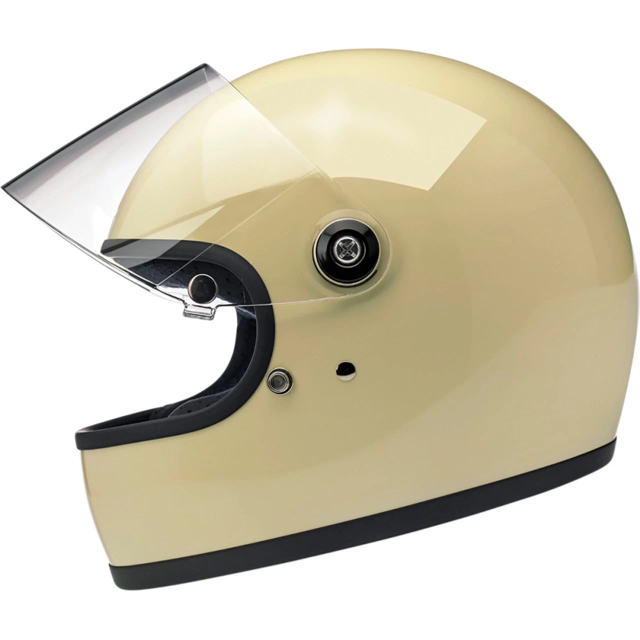 The Biltwell Gringo S now comes your way with an ECE rating. It’s built around Biltwell’s injection-molded ABS outer shell and features a shock-absorbing EPS liner with hand-stitched interior padding, cheek pads and BioFoam chin bar cushion for comfort. The anti-fog Gringo S shield boasts awesome optics and simple hinge mechanics for high style and easy removal for replacement or cleaning. A snap and tab configuration on the rider’s left side offers speedy opening and secure closing to protect its wearer from road debris and wind irritation with little fanfare or complication.