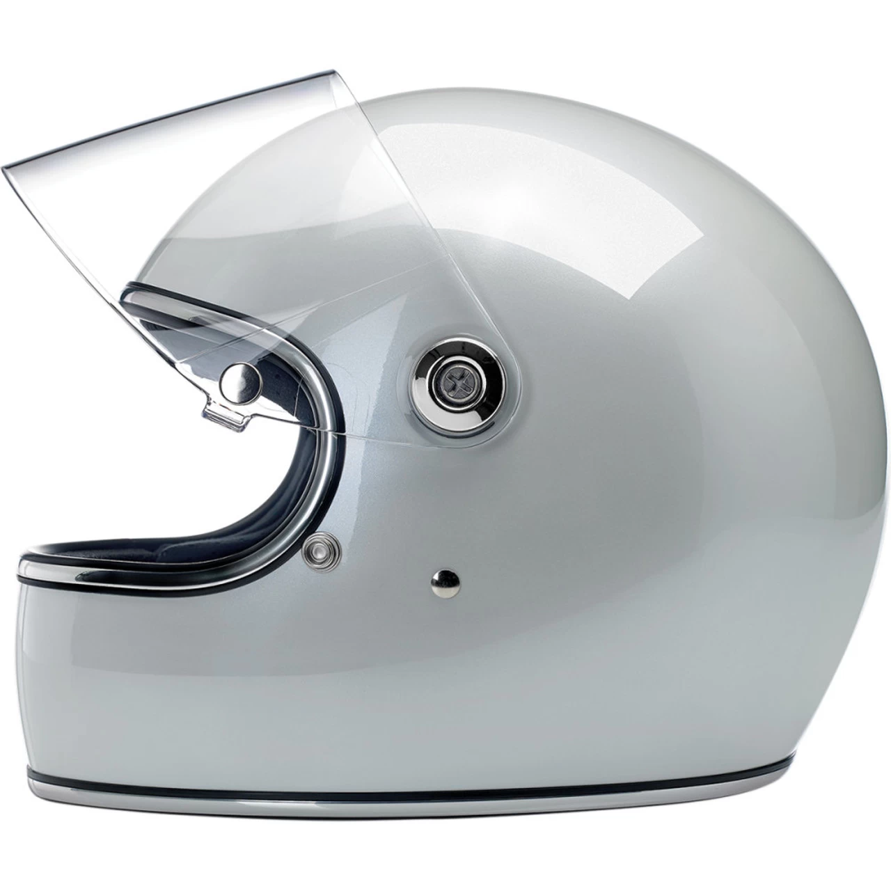 Grab yourself the Biltwell Gringo S in a classy Metallic Pearl White that pairs well with just about any bike or style. It’s built around Biltwell’s injection-molded ABS outer shell and features a shock-absorbing EPS liner with hand-stitched interior padding, cheek pads and BioFoam chin bar cushion for comfort. The anti-fog Gringo S shield boasts awesome optics and simple hinge mechanics for high style and easy removal for replacement or cleaning. A snap and tab configuration on the rider’s left side offers speedy opening and secure closing to protect its wearer from road debris and wind irritation with little fanfare or complication.
