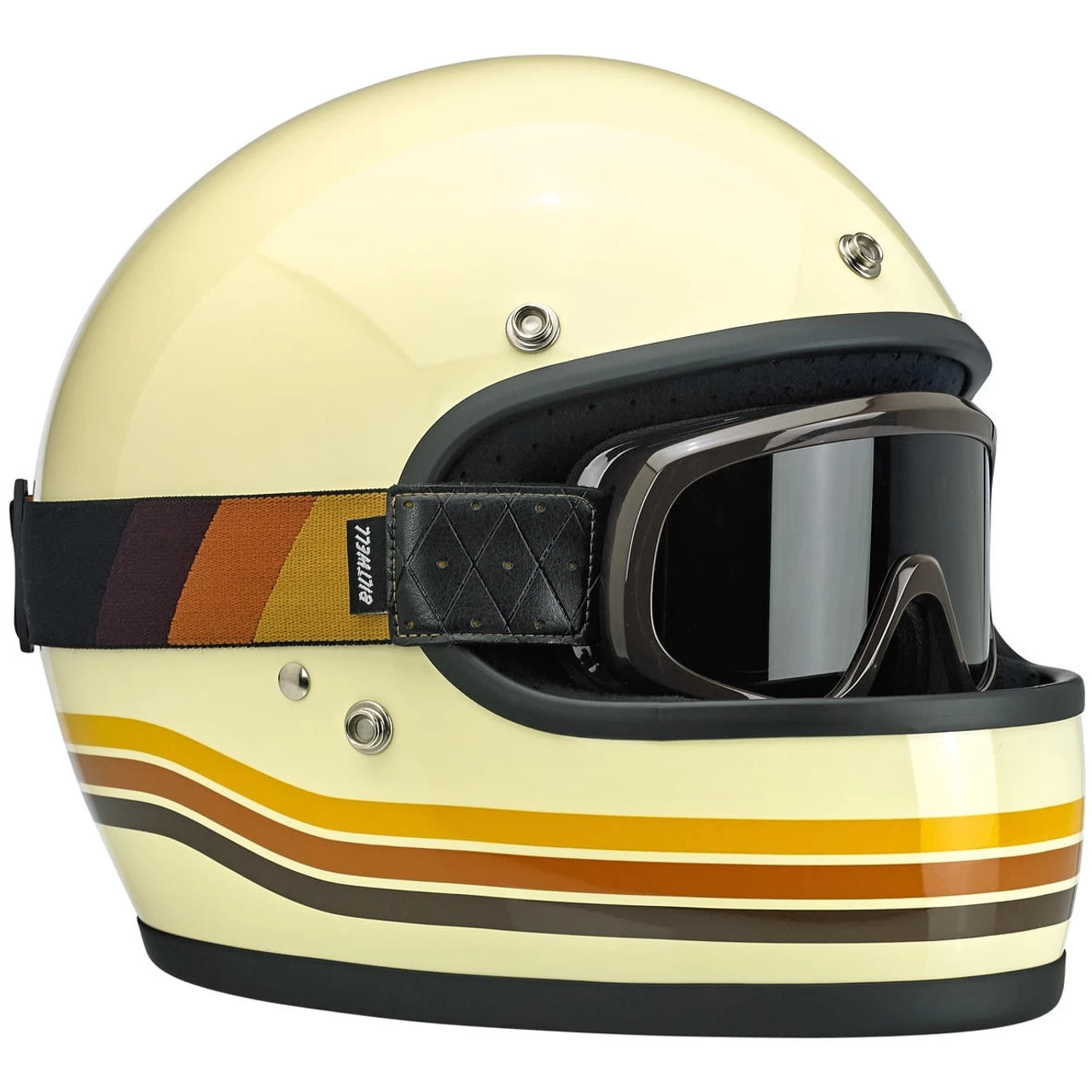 The Biltwell Overland 2.0 Goggles come in a Gold/Rust/Brown combination. The Overland 2.0 goggles are crafted around a rugged yet flexible injection-molded polyurethane frame. This frame is 10% narrower than the original Overland goggle, but utilizes the same wide-periphery polycarbonate plastic lens. Injection molded lenses like Overland’s are more impact-resistant than standard die-cut plastic lenses, and boast superior optics, too.
