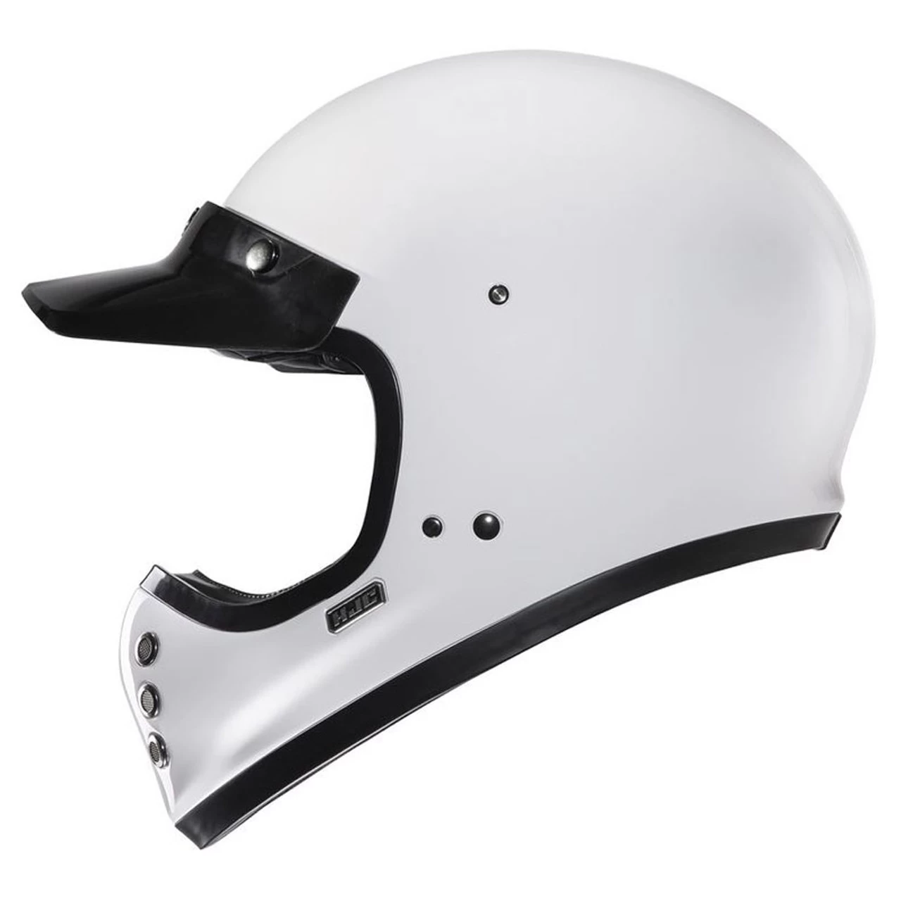 The new HJC V60 Helmet has a classic design with modern features. Advanced fiberglass shell with internal drop down sun visor, washable cheek pads and grooves for sunglasses while on the road. DOT approved with speaker pockets for Bluetooth. Solid Gloss White