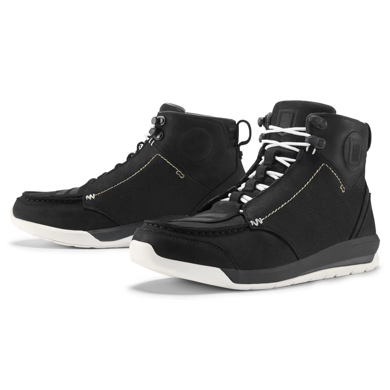 The Icon 1000 Truant 2 Boots are an evolution of Icon’s Truant Boots – moving into a moccasin/hi-top look that’s part sporty, part class. Pick them up in a black finish that pairs quite well with a white sole.