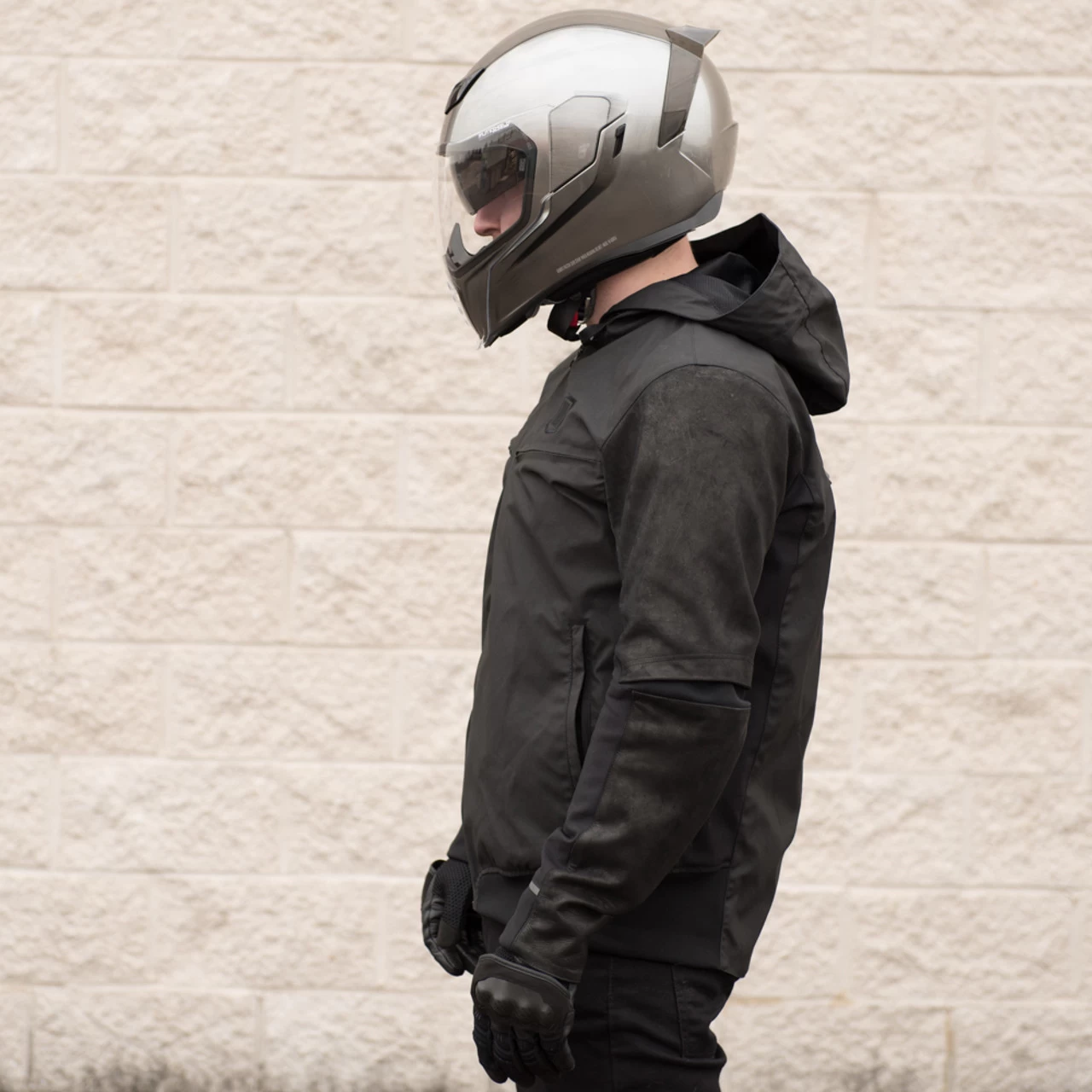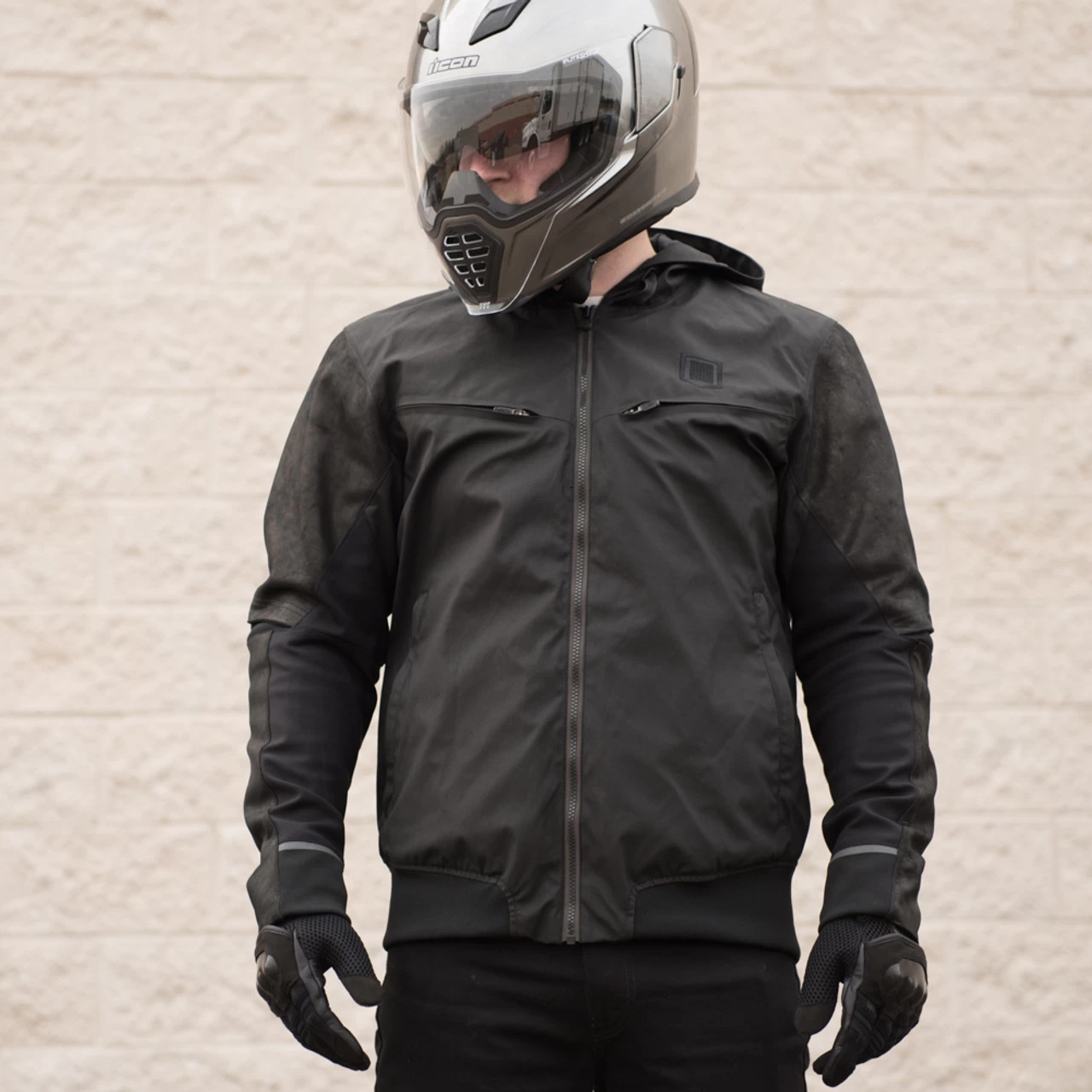 The Varialâ„¢ jacket is the latest in hood-rich styles from the ICON 1000 collection. It’s another good-looking jacket that offers protective features along with plenty of functionality. This time we started with a coated nylon chassis and reinforced it with drum-dyed leather paneling, all crafted around a modern jogger silhouette. Ribbed closures, YKK® Aquagard reflective zipper, reflective trims, and serious chest venting keep things legit. Internally the Varial features a full slate of D3O® impact protectors (shoulders, elbows, and back). Smart street coverage, this is modern moto outerwear at its finest.