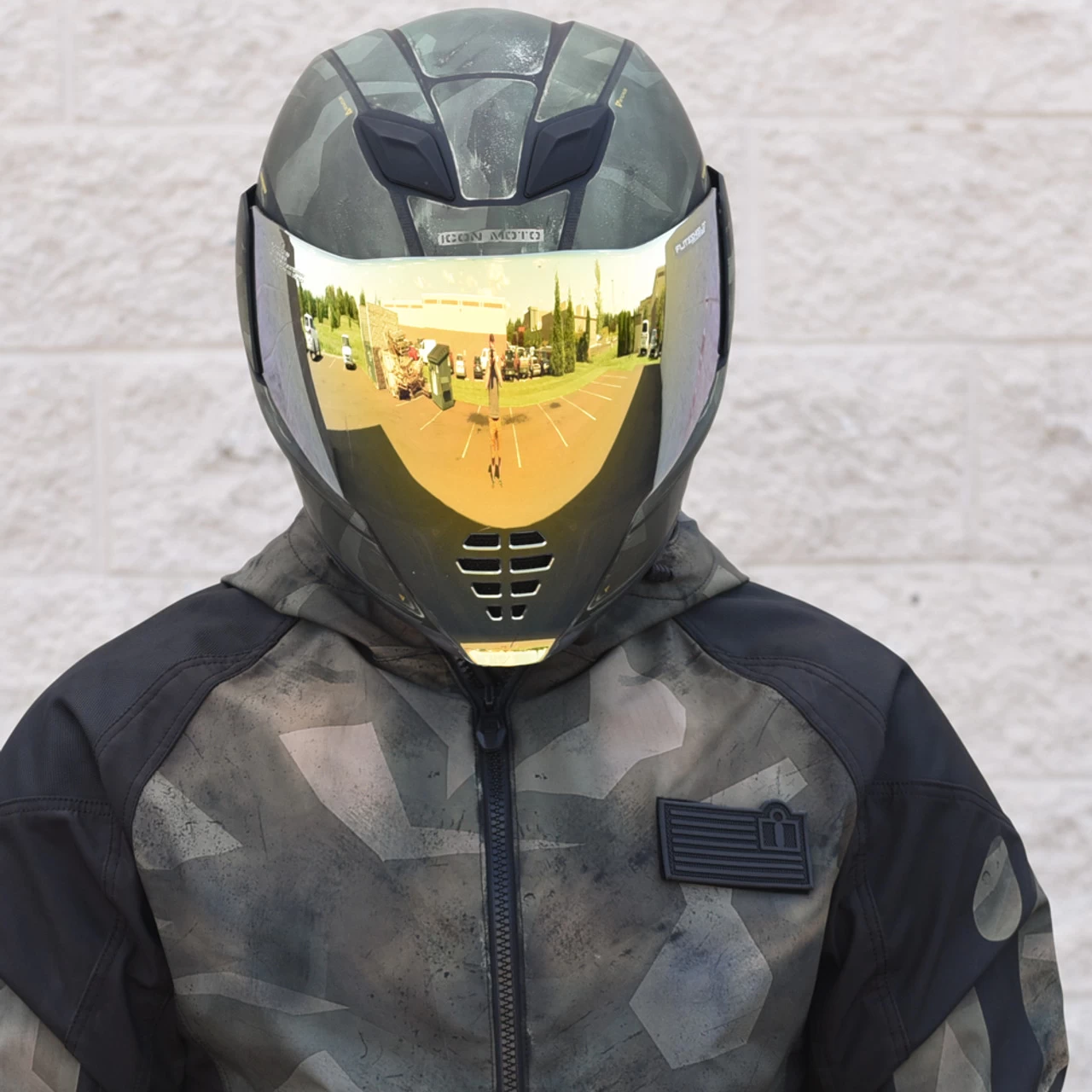 Ends, way, means – your name means nothing on the battlefield. Out there you’re merely a soldier of the tarmac rocketing through the streets until the dotted lines become solid. Your mission critical gear begins with the AIRFLITE Battlescar 2. The standard issue RST gold shield conceals identity, keeping your covert operation just that. Everyday on the road you face heavy opposition – ride with ICON and enjoy the revolutionary Airflite helmet in yet another unique design.