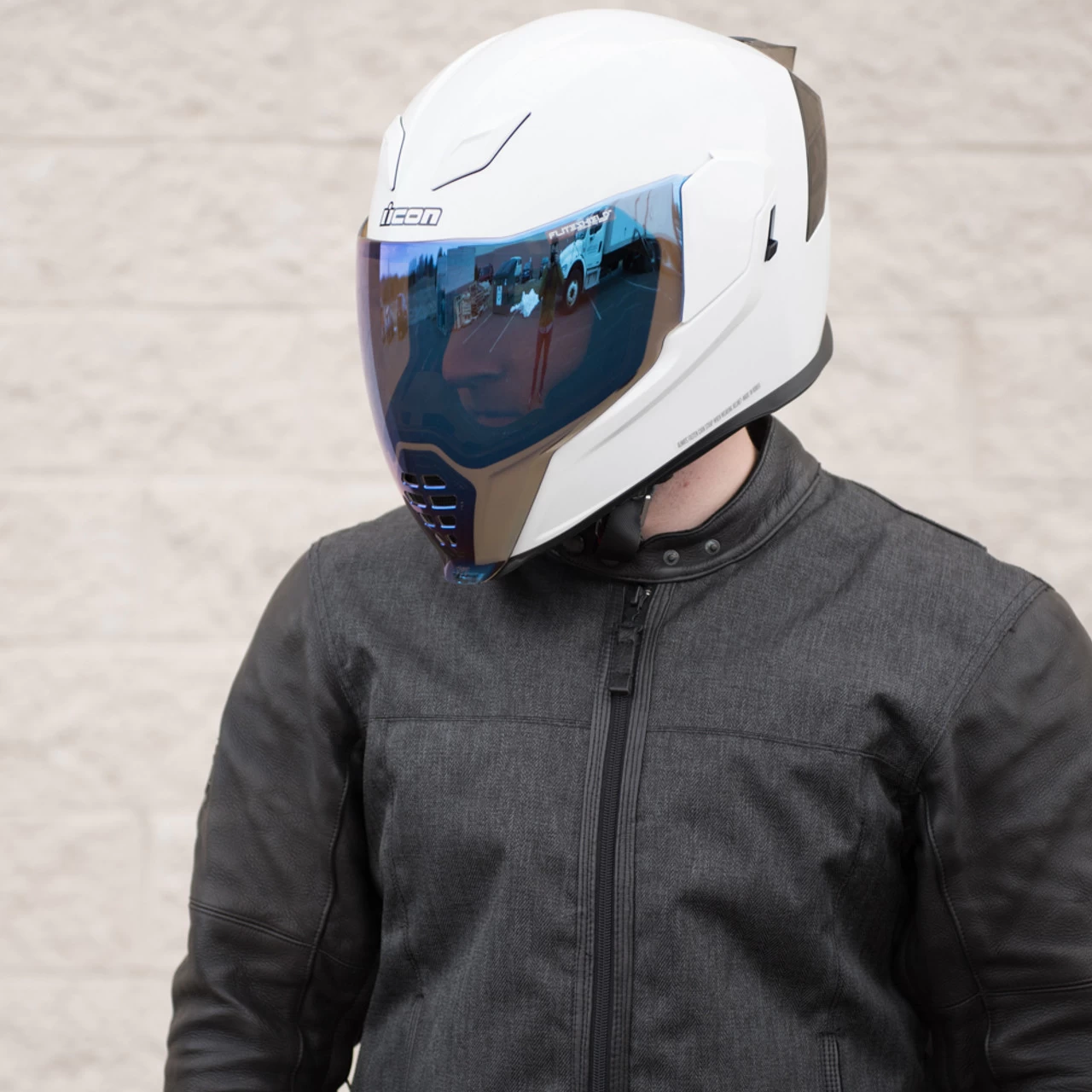 Grab an Icon RST Blue Fliteshield for your Icon Airflite helmet, a fresh design that mixes up the typical motorcycle shield look. The Icon Fliteshield features a 3D molded process for optical clarity, and a fog-free coating.