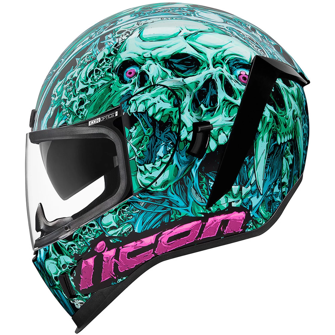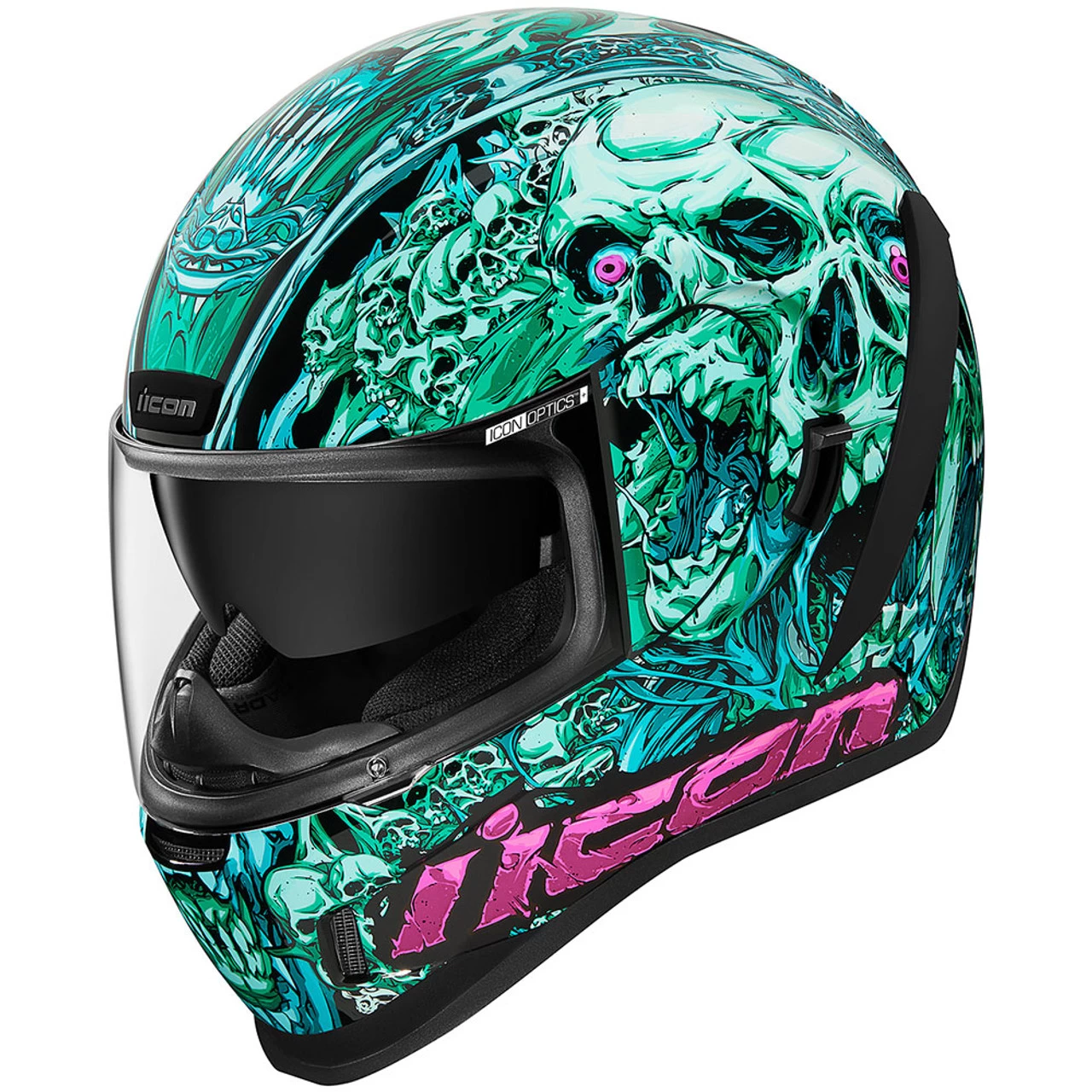 The Icon Airform Parahuman Helmet comes your way with skulls, skulls and more skulls. What are you gonna do with all those skulls? Ride in em, that’s what. Pickup the Icon Airform Parahuman design in a blue finish.
