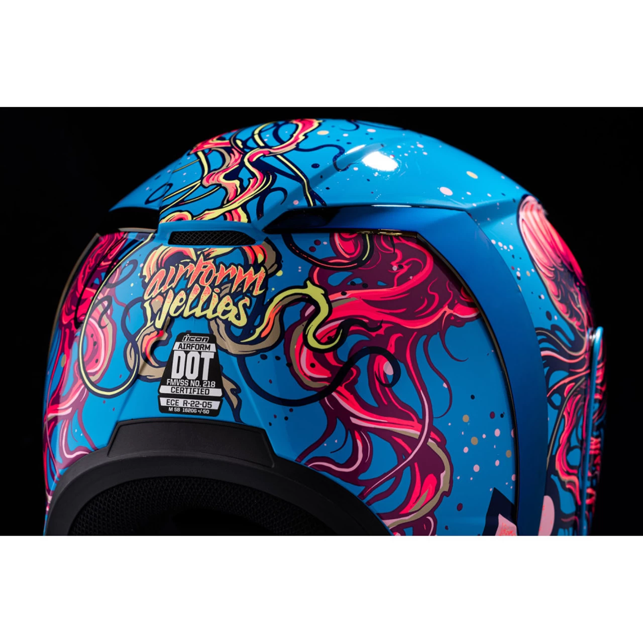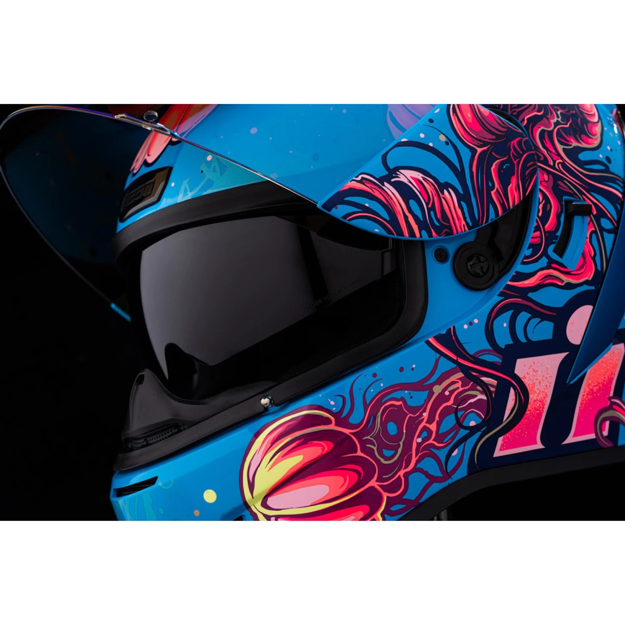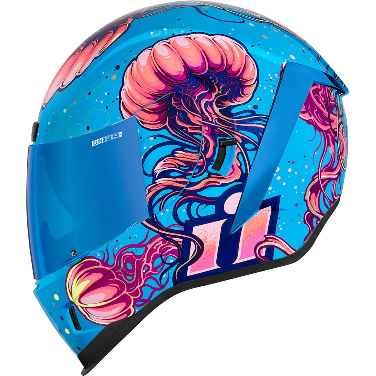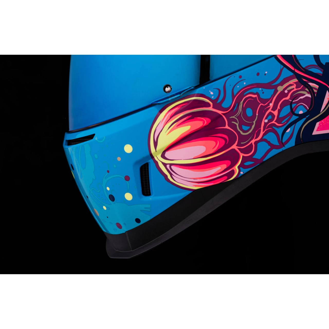 We hope you never find yourself swimming with the fishes, but for riders who do enjoy the deep blue sea, Icon has a fresh design with the Airform Jellies Helmet that includes jellyfish overtop of a beautiful blue finish. This Full Face Helmet also features glow in the dark paint for an awesome look that will highlight the jellyfish should you find yourself in a night time situation.