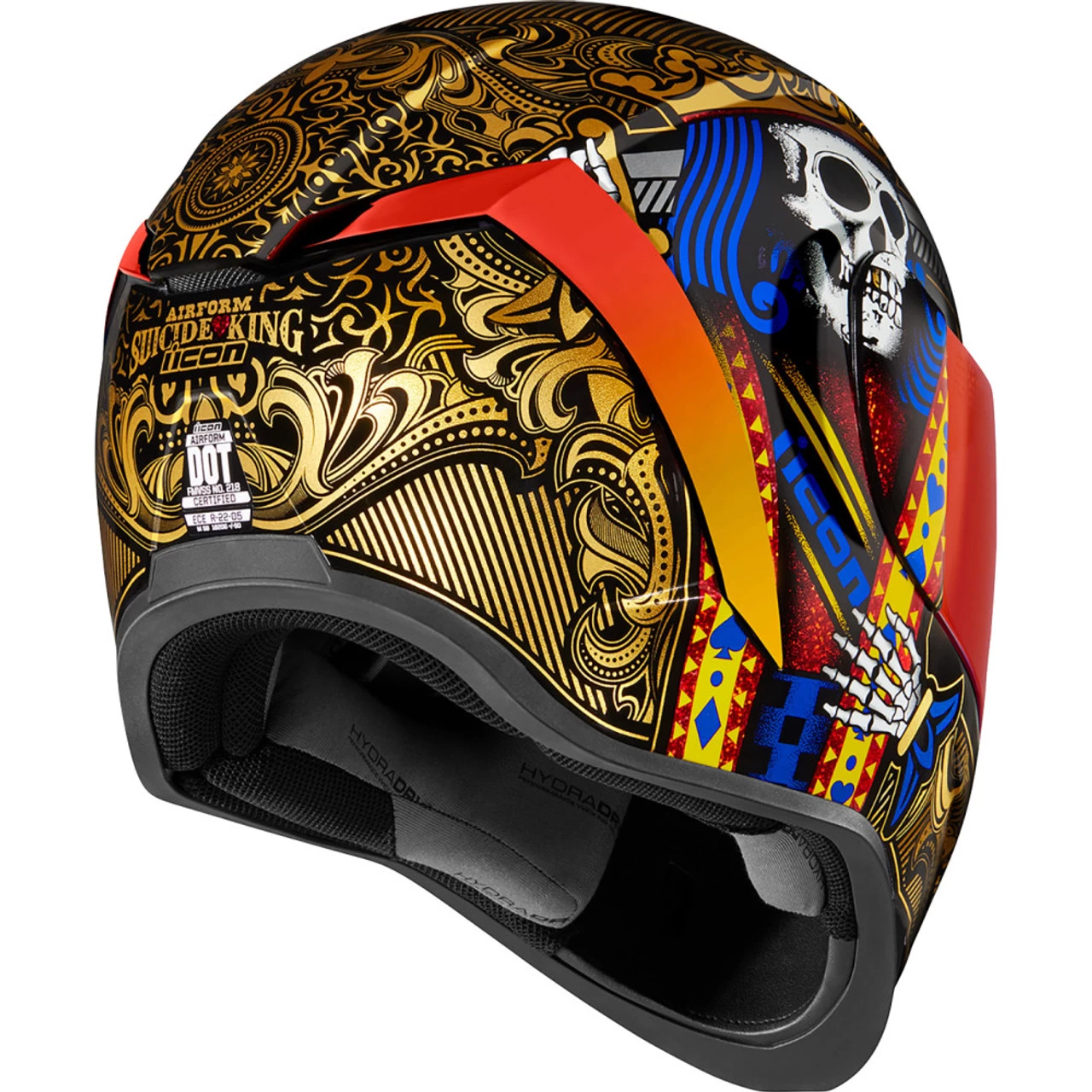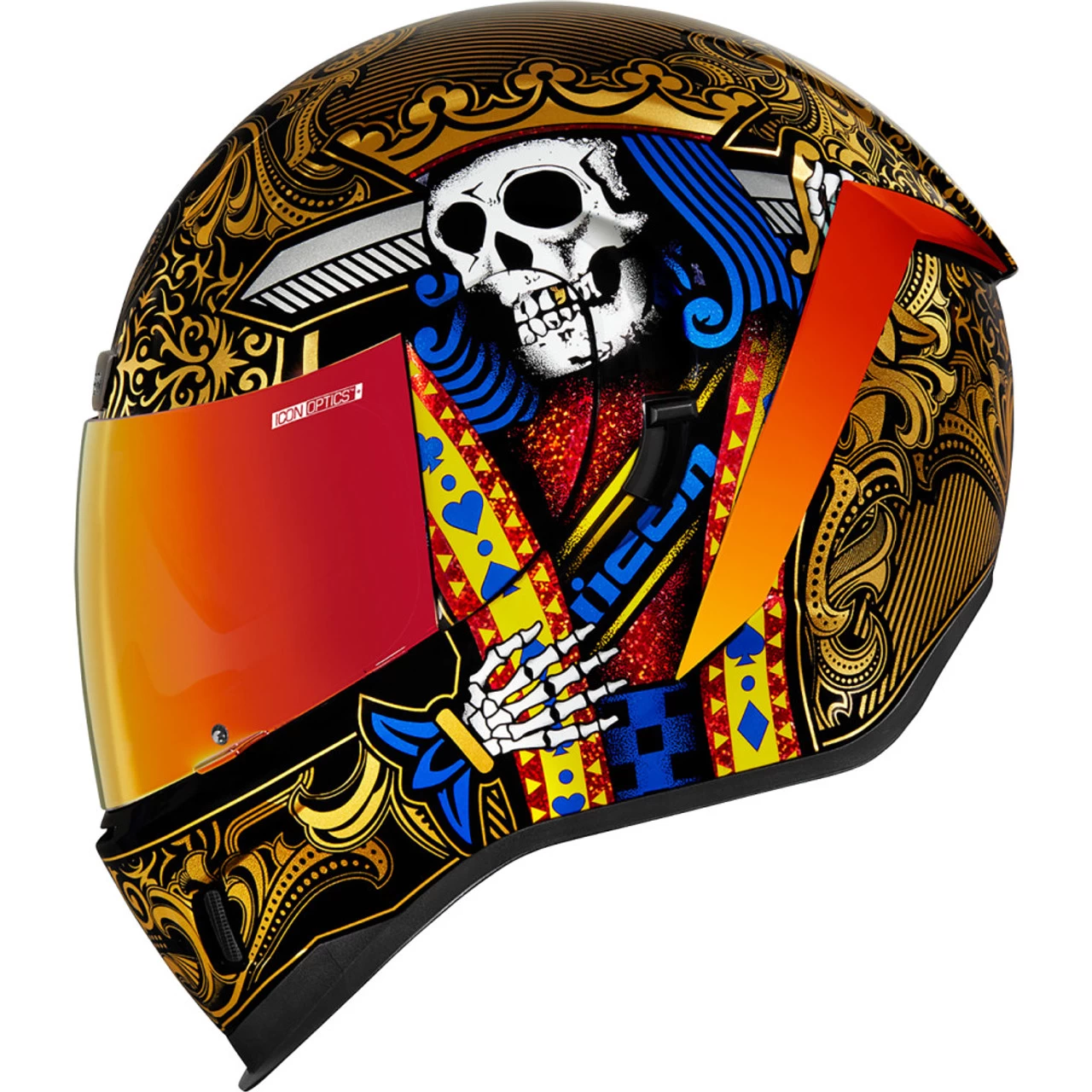 There are Icon designs and then Icon designs that really pop – we’d put the Icon Airform Suicide King in the “this one pops” category. Bold colors, a sword wielding skeleton and rich design everywhere you look make this Airform Helmet one of the most unique yet from the full face lineup.