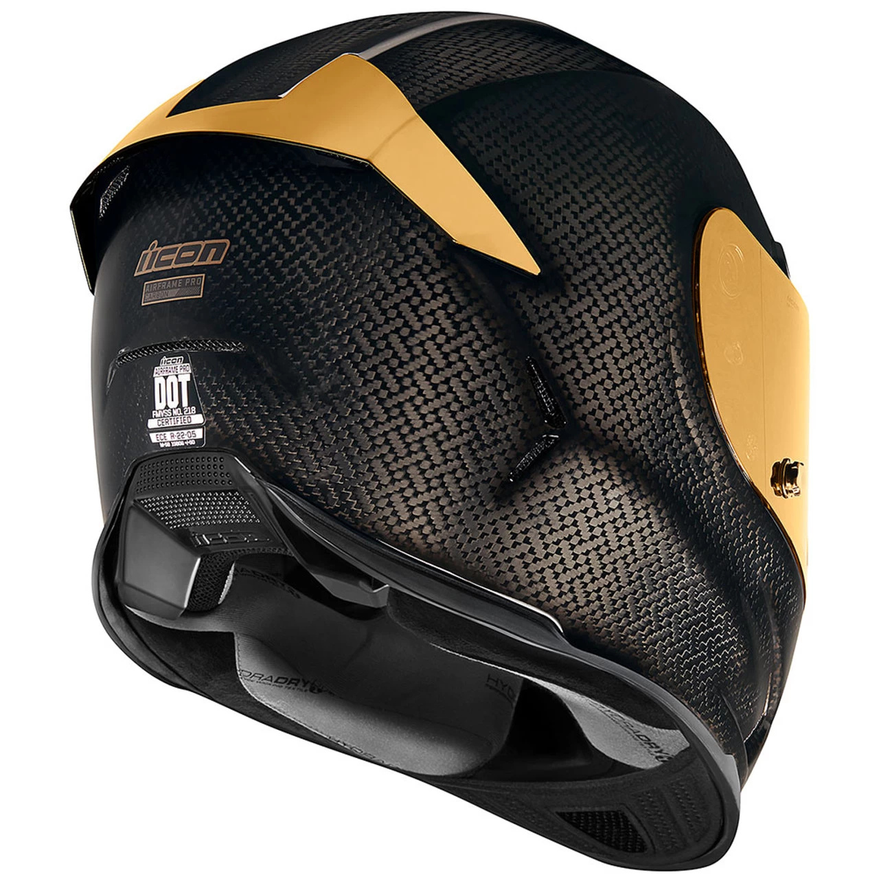 Go shiny or go home. The Airframe Pro Carbon is the ultimate in helmet bling. The best in modern technology, ICON’s hand-laid 4Tress carbon weave, is paired with an RST TracShield, vents, and spoiler, resulting in an incredibly light, unbelievably durable, and undeniably flashy helmet. Internally, the shell is outfitted with a removable/washable moisture-wicking HydraDry interior, which keeps you comfortable for short and long rides alike. Enjoy precision manufacturing at its finest with the Airframe Pro.