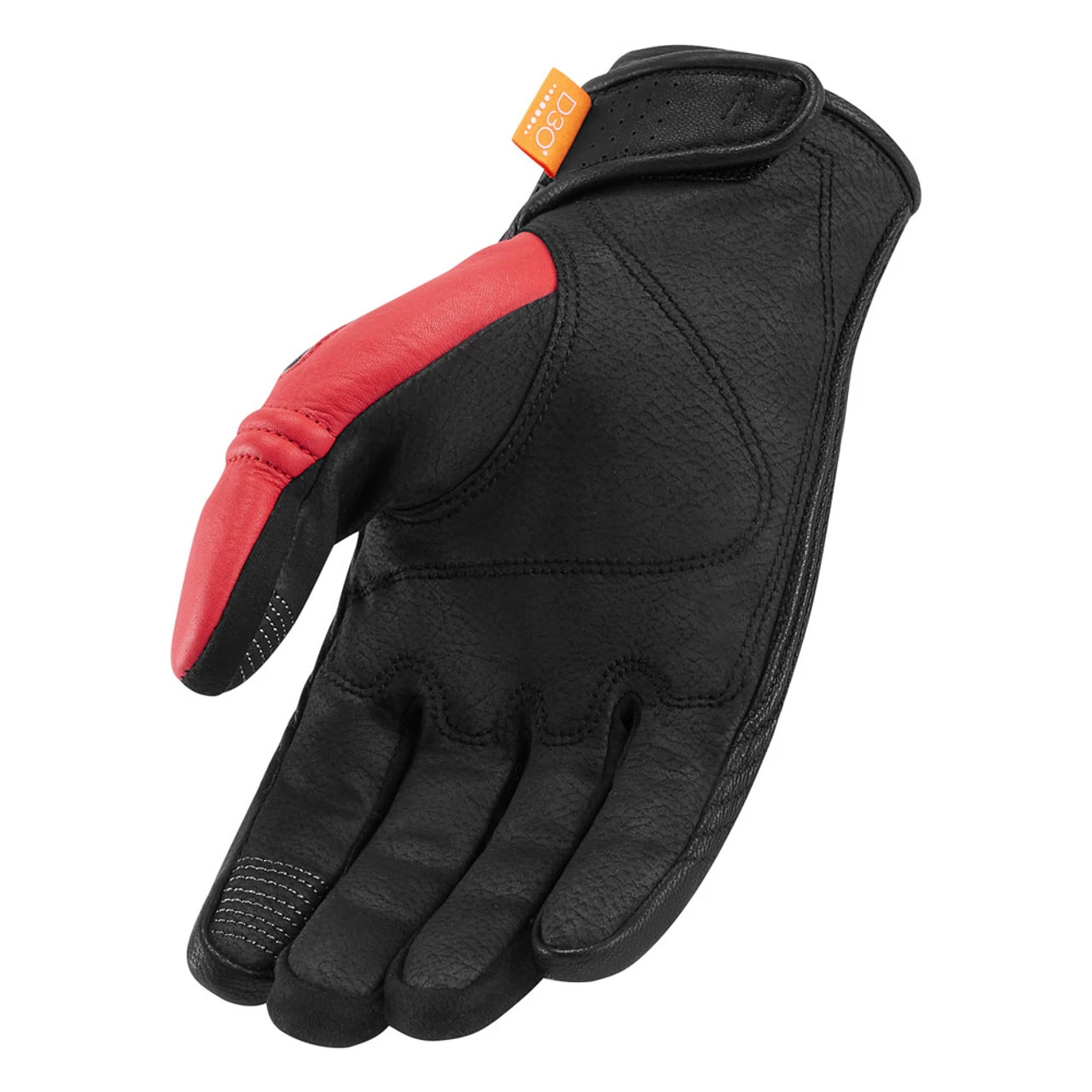 The Icon Automag Gloves are a nice combination of comfort and durability, plus you can have plenty of style with a red and black finish. The Automag glove is constructed from a supple goatskin chassis with abrasion-resistant Ax Suede palm overlays. D3O inserts add reinforcement, and the accordion flex zones ensure optimum performance while maintaining fit and flexibility. The touchscreen-enabled index finger and thumb allow you to use your devices without removal of the glove.