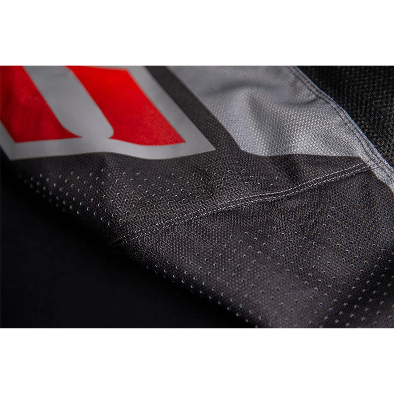 airflow. The Hooligan™ jacket is perfect for hot days and fast rides. Internally, the Hooligan™ features a full suite of D3O® armor (back, elbow, and shoulder) just in case you have a solo dance with the asphalt. Playing rough in the streets is the name of the game, and the Hooligan™ leads the pack. Gray, black and red colorway helps show off the details.