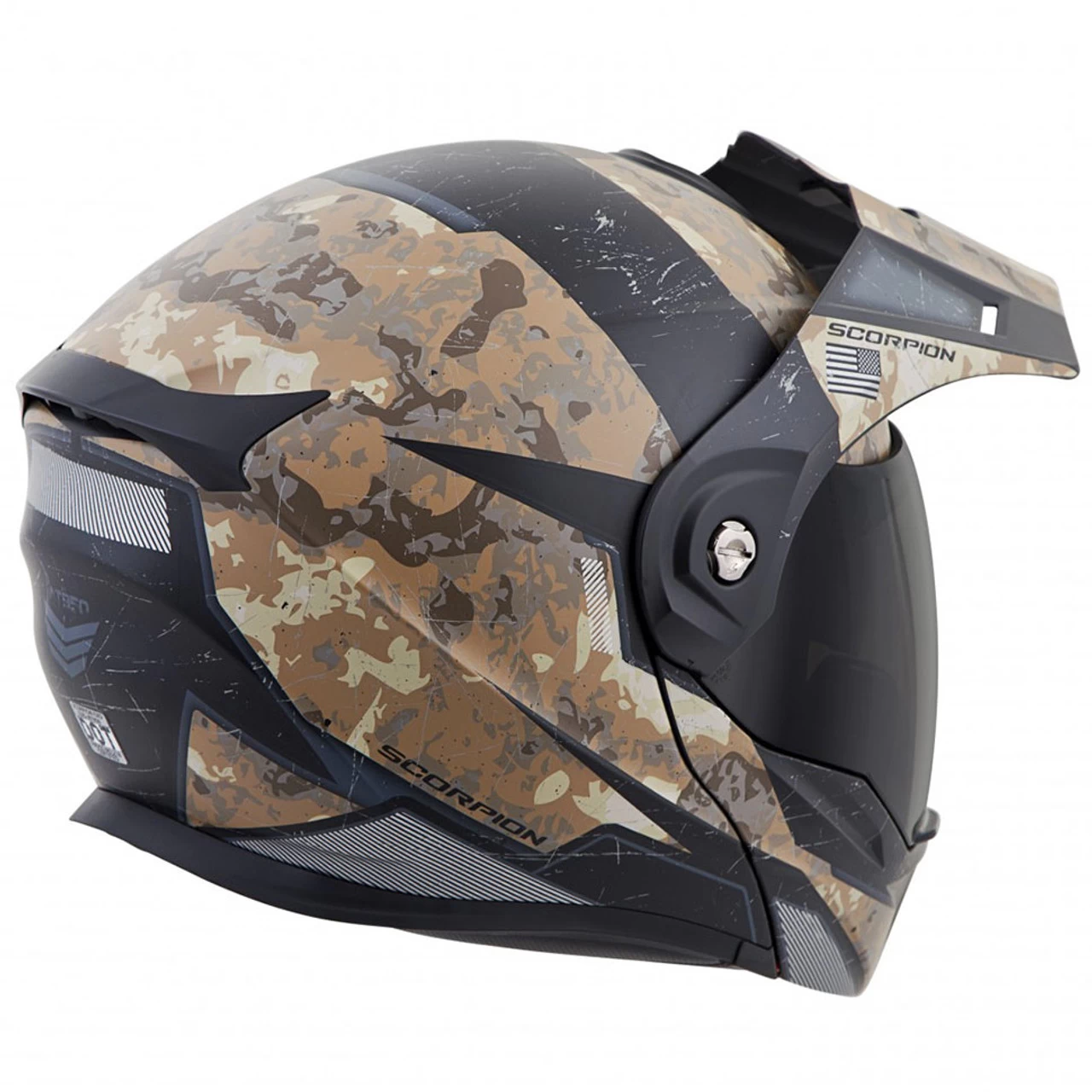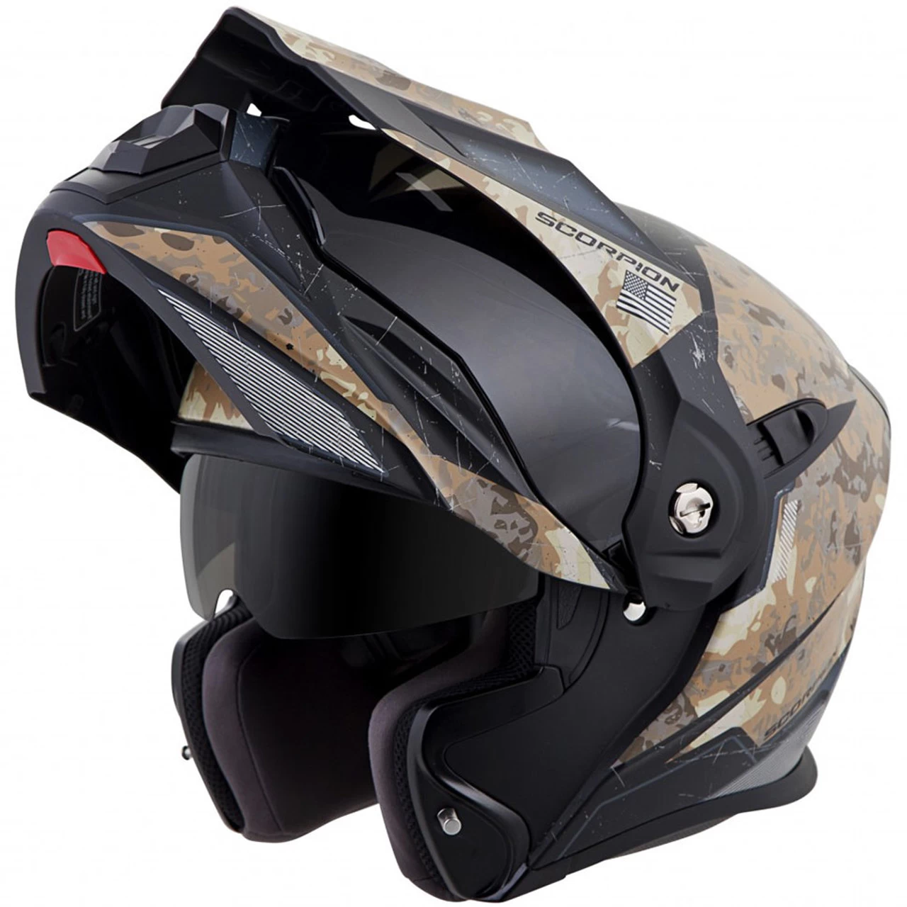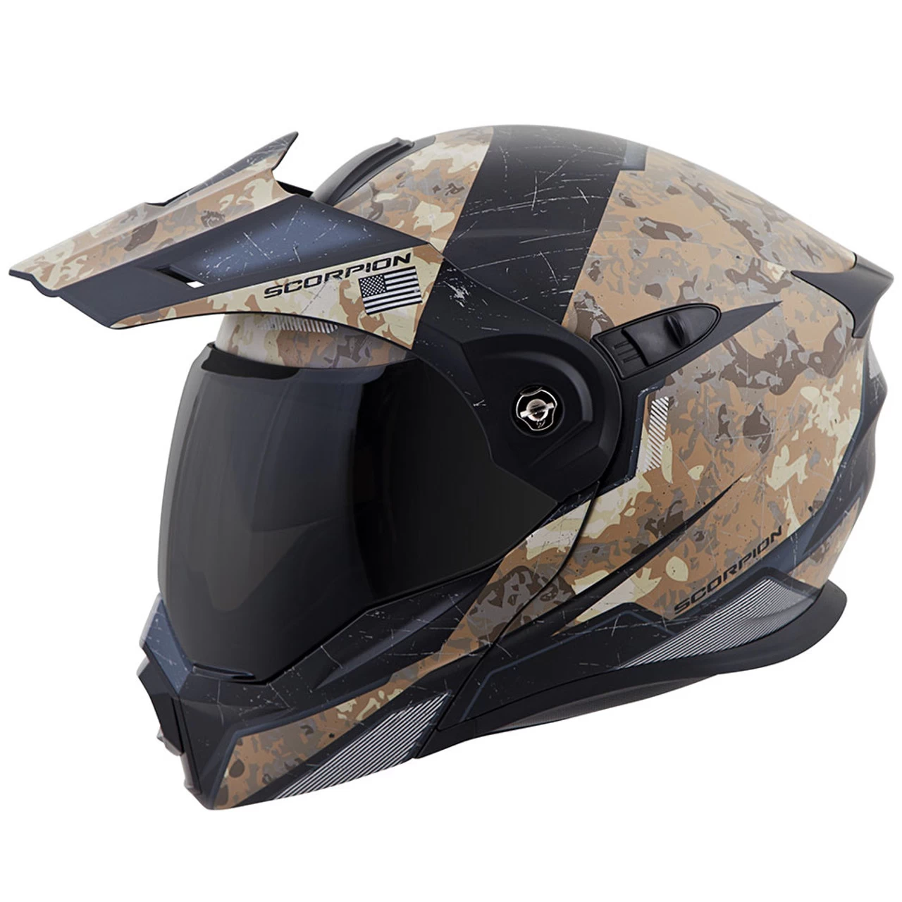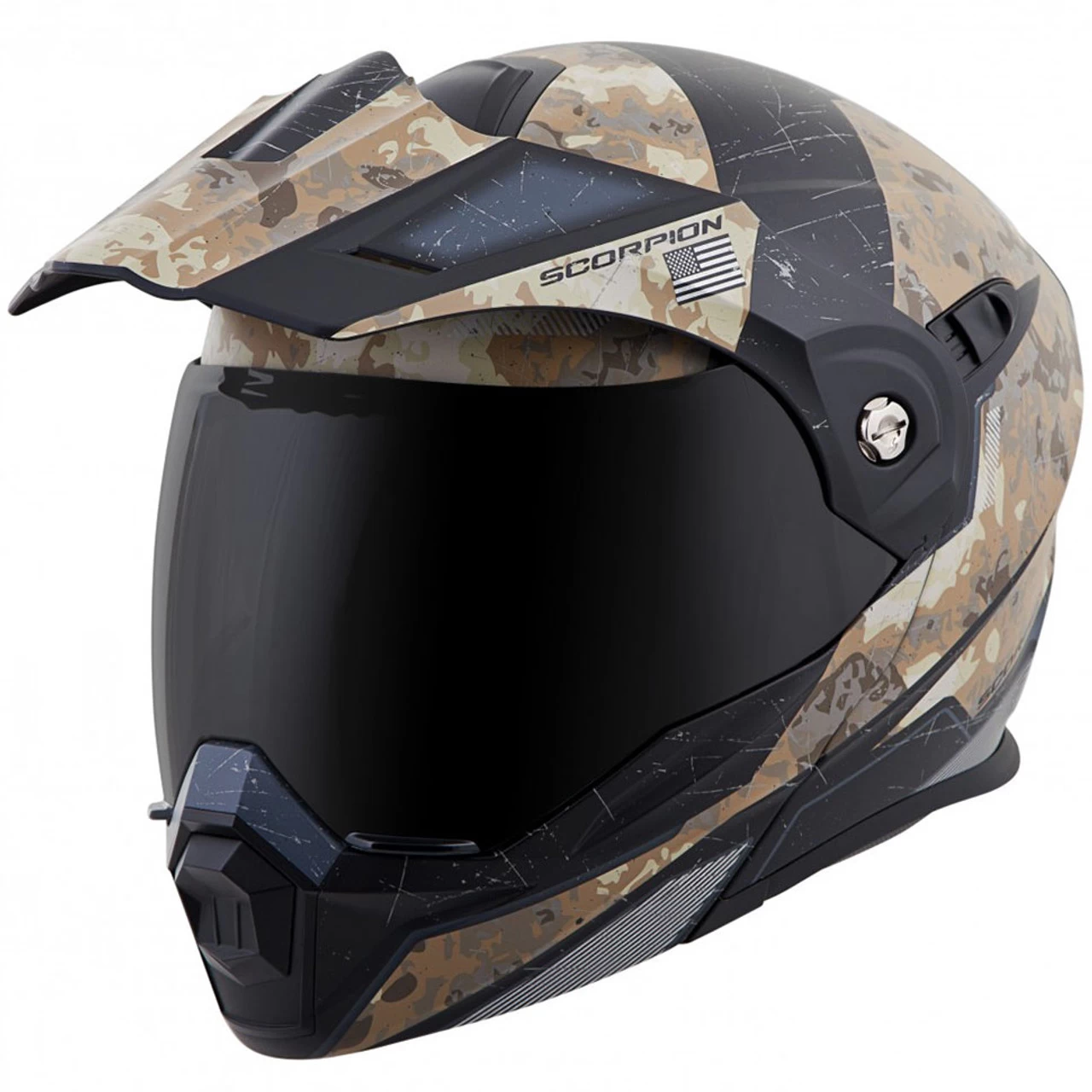 The Scorpion EXO-AT950 Battleflage Helmet offers modular design for incredible versatility with a fresh, unique update to the EXO-AT950 lineup. It’s a full face, aerodynamic modular adventure touring helmet that can easily be used on or off-road. With an oversized eyeport for a solid field of view, an internal drop-down sunvisor and plenty more features, this helmet is as useful as it is stylish.