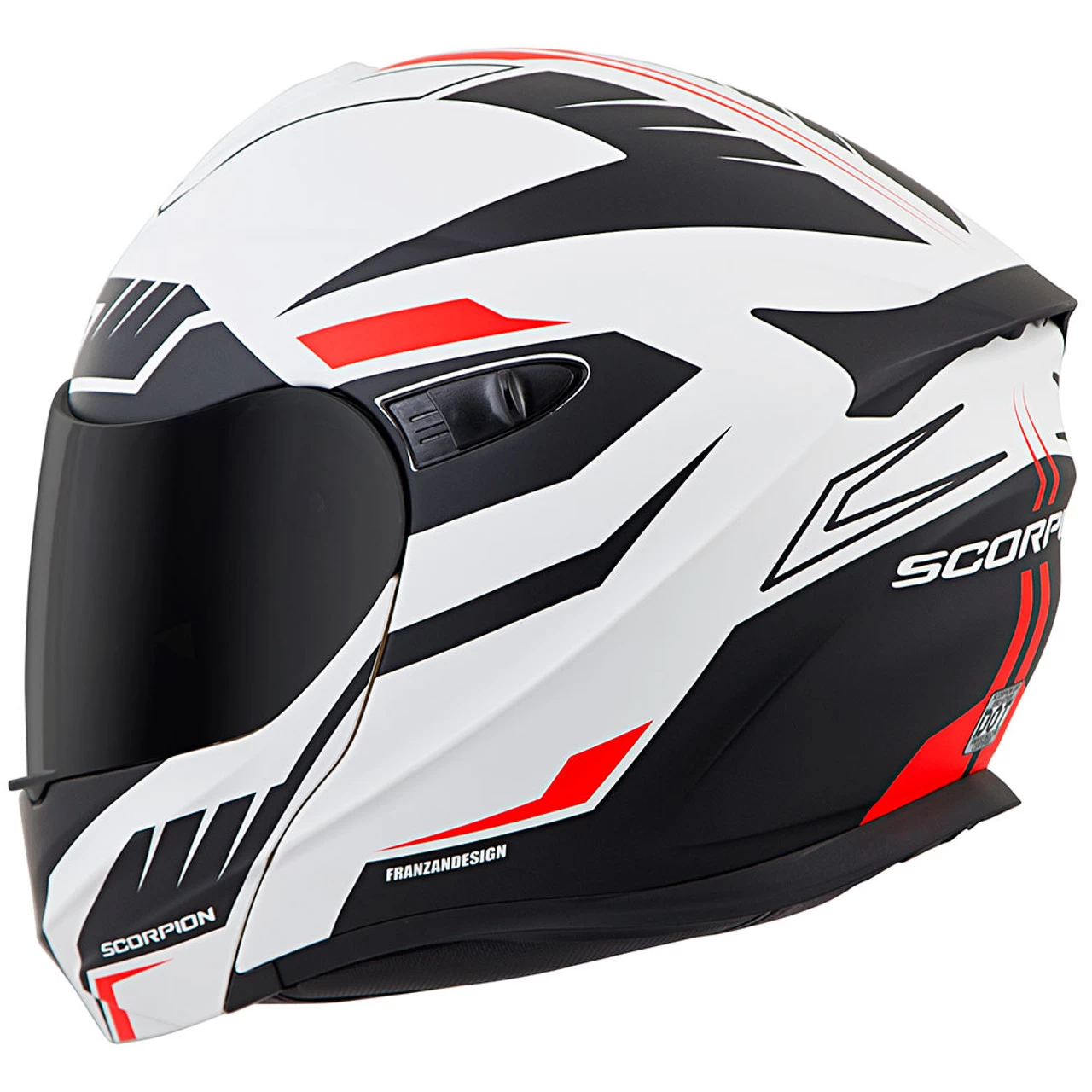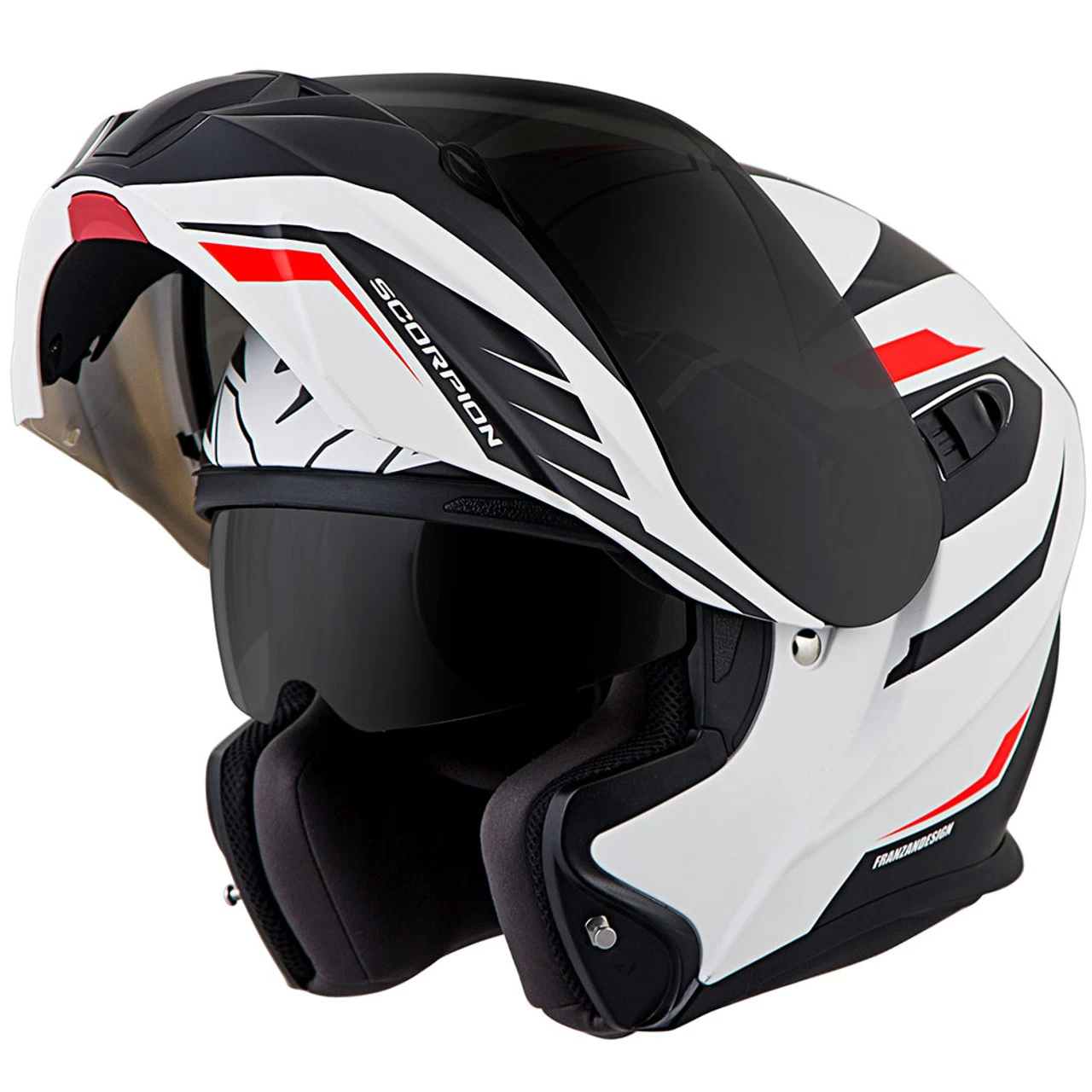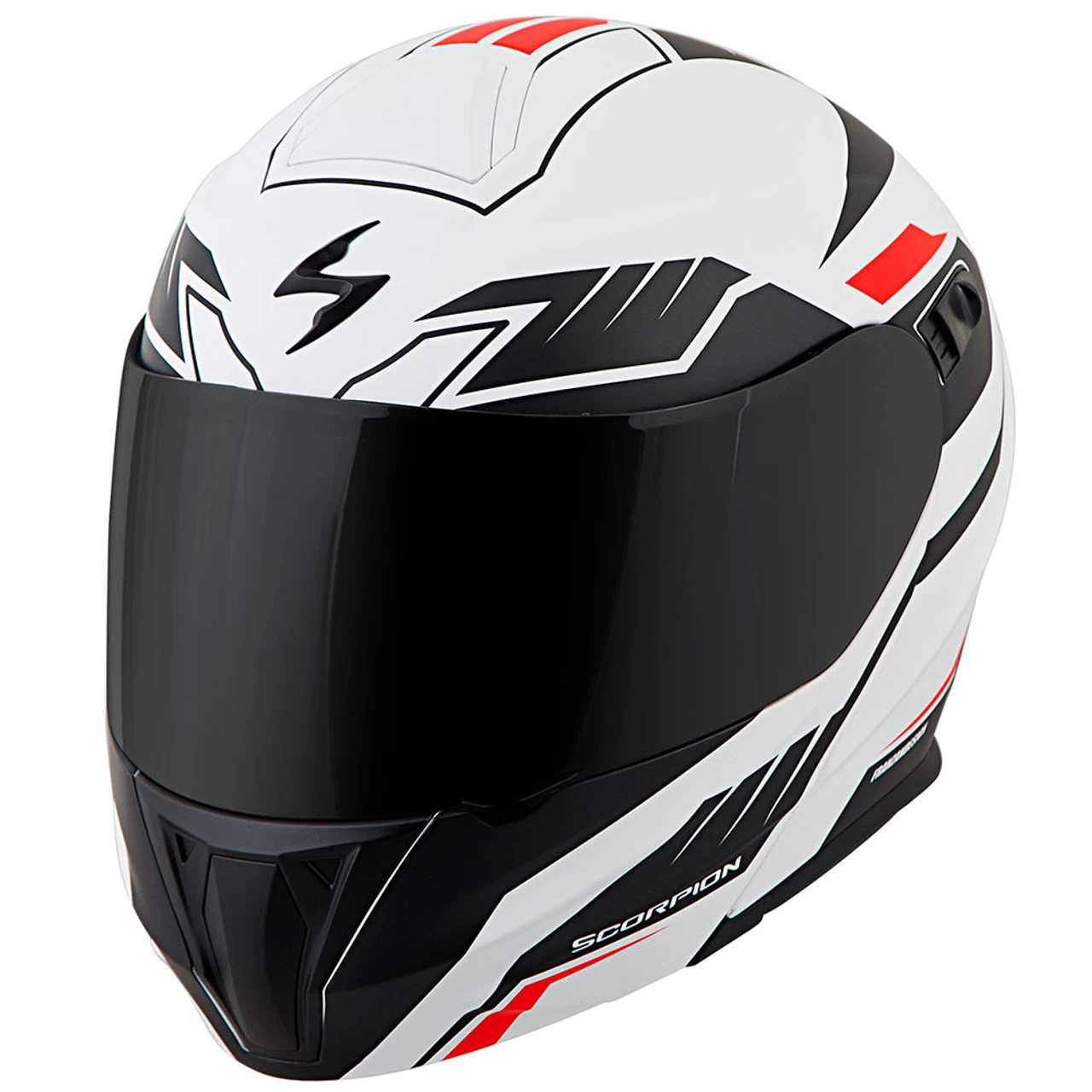 The Scorpion EXO-GT920 Shuttle Modular Helmet comes in a black and white look with some red accents for a solid look that’ll go with plenty of styles.