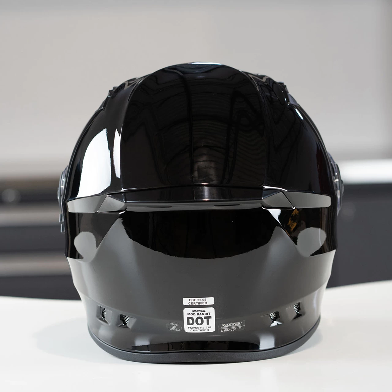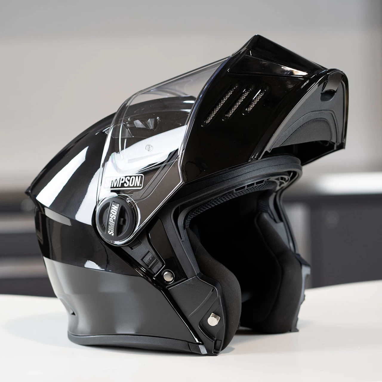New from Simpson Helmets, the Mod Bandit breaks the mold… it’s an aggressive, street inspired helmet that goes next level with a modular design. It features a flip up front chin bar as well as an internal drop down visor. Plus it’s got the venting and aggressive lines built in for the tough look that Simpson is famous for. Riders will enjoy plenty of new perks from the Simpson Mod Bandit – one hand modular function, communication system ready, Pinlock system compatible, and an internal sun shield. Ready to ride across town or around the world, the Mod Bandit offers the function and style you are looking for with plenty of flexibility. Grab your new aggressively styled Modular Bandit from Simpson in classic Gloss Black.
