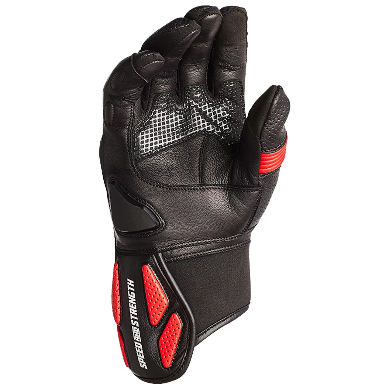 Even a casual cruise can turn aggressive, and this Premium Goatskin Leather Chassis glove is ready for whatever the road brings. It’s race glove lineage Low Profile Neoprene Cuff with TPR Closure help keep your gloves in place. Air Ventilation at the Fingers and Stretch Rib Panels on Knuckles mean you’ll keep cool and be ready for anything. Get yourself a set of the Speed and Strength Exile Leather Gloves in a good looking black and red combo.