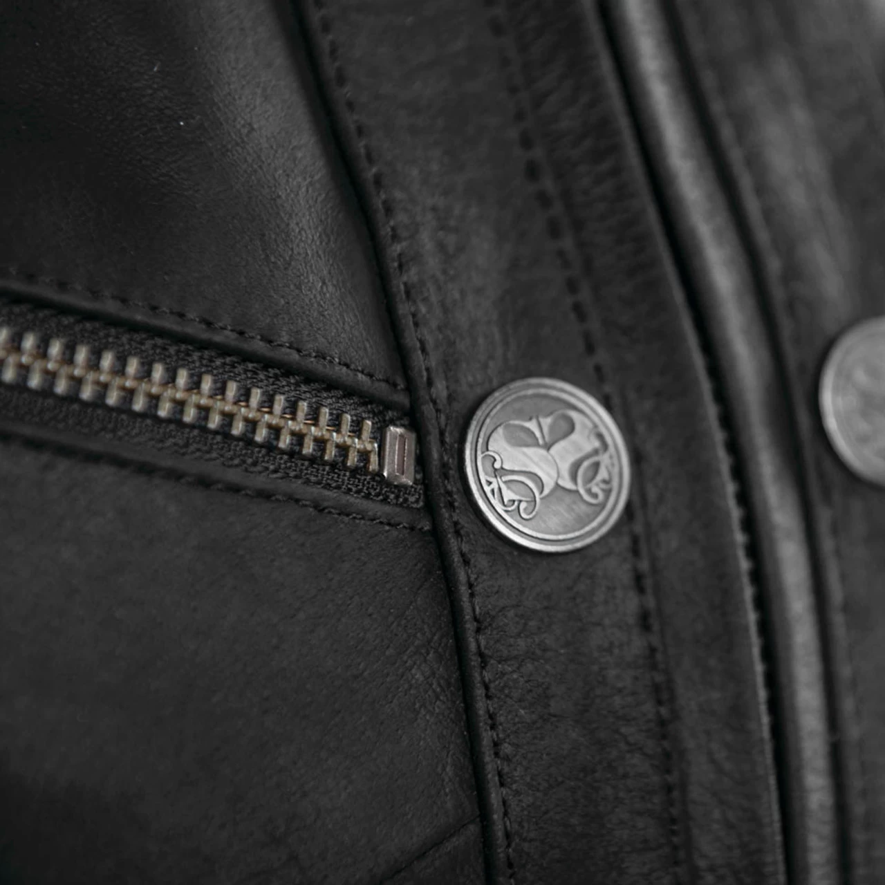 Speed and Strength adds a uniquely styled women’s leather motorcycle vest with reflective trim plus a removable hood. Add in the removable CE approved spine protection and you get peace of mind along with plenty of style in your choice of cream or black colorways.