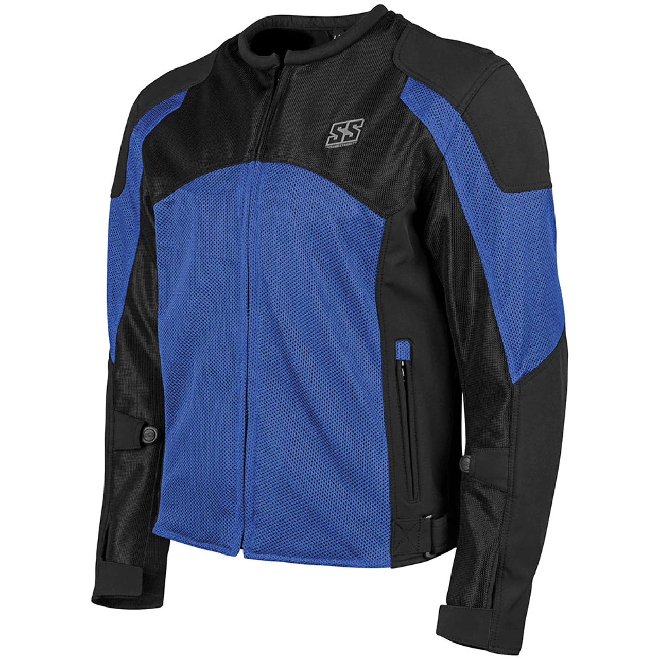 The Speed and Strength Midnight Express Blue and Black Mesh Jacket is a mesh motorcycle jacket that is packed with features for the rides ahead. It’s comfortable – with a mesh and AR500 super-stretch fit frame and also provides protection with removable C.E.-Approved shoulder, elbow and spine protection. Also includes a molded Strong Arm sleeve adjuster.