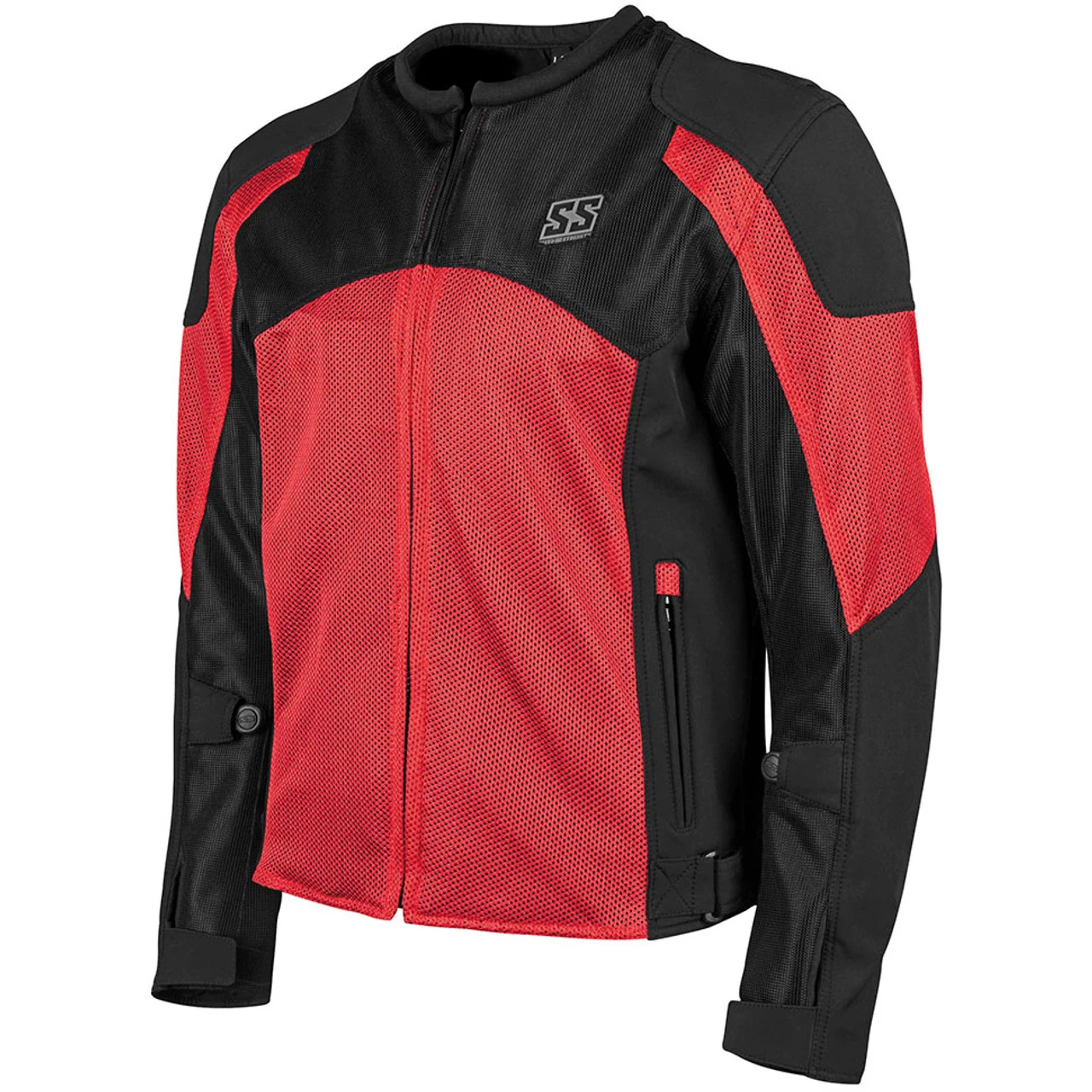 The Speed and Strength Midnight Express Mesh Jacket in Red is a mesh motorcycle jacket that allows for plenty of airflow. It’s comfortable – with a mesh and AR500 super-stretch fit frame and also provides protection with removable C.E.-Approved shoulder, elbow and spine protection. Also includes a molded Strong Arm sleeve adjuster.