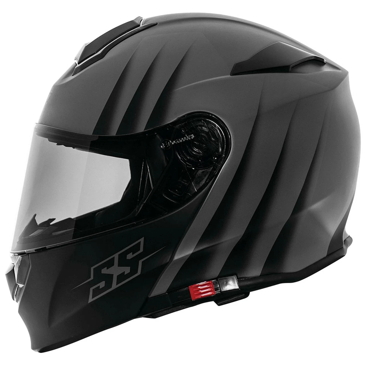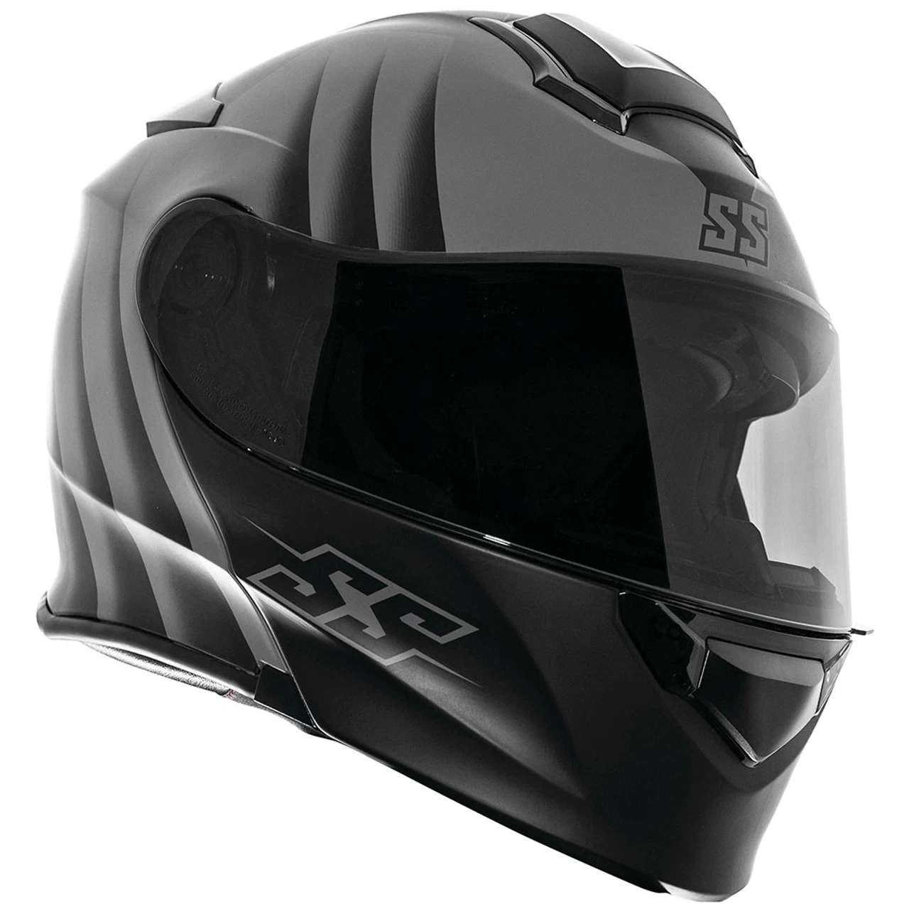 Speed and Strength’s new SS4100 Modular Series offers the versatility of a flip up chin bar along with plenty of important features packed in. You like to keep your options open so you can do what you want. The SS4100’s Modular Flip-Up Face Guard with an easy-to-find single button release means full-face protection at high speeds or through aggressive sections and open face freedom when you want to cool down, take in the scene, or just chat up a future pillion volunteer. You’ll also have the Drop Down Internal Sun Visor to cut the glare (90% Of UV Rays) and block the wind with the flick of a finger whether the Face Guard is up or down. The Optically Correct Anti-Fog/Anti-Scratch Face Shield and Pliable Rubber Breath Deflector ensure fog-free vision and a Dual-Density Protective EPS System inside of the Protective ABS Shell construction Meets or Exceeds DOT and ECE 22.05 certification, so you’re not giving up anything – a perfect no-compromise solution. Pickup the SS4100 Spikes Helmet in the black and grey spike design for an intense look.